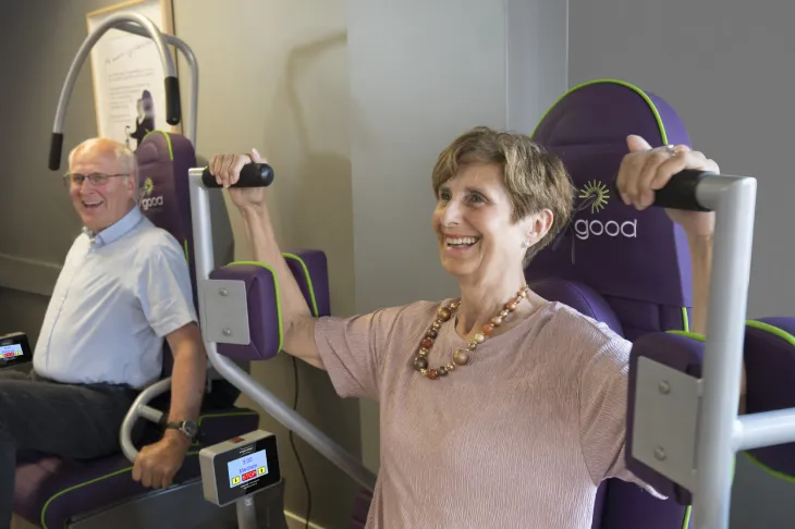 I Feelgoodmaskinene er alt dette planlagt for deg. Alle maskinene tar for seg ulike muskelgrupper. Alt du trenger å tenke på er å skyve og trekke i den retningen håndtak og pedaler beveger seg, og du vil automatisk aktivere de muskelgruppene som maskinen retter seg inn mot.